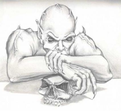 Demon And Skull Tattoo Design.